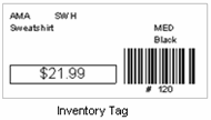 Inventory Tags: Includes the current item price only. This is the same as printing tags from your item list. Note that on a price change, this value will be different depending on the status of the price change. If Pending, the old price is printed since the new price has not yet been applied. If Applied, the tag will print with the new price. And if Restored, it will again print the old price. View Sample